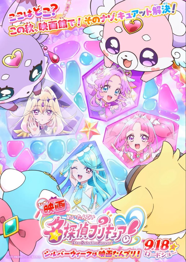 The two girls soon witness a robbery where a treasured item is stolen. Sensing that the perpetrators are the Phantom Thieves Guild, a group of evil fairies who steal objects containing crystallized feelings called Makoto Jewels to create a world blanketed in lies, Anna and Mikuru decide they cannot ignore the trouble. Using their pendant and a Makoto Jewel, they transform into legendary warriors: Anna becomes the intuitive Cure Answer, the series' first purple-colored lead Cure, while Mikuru becomes the knowledgeable Cure Mystique. Together, they form the Star Detective Precure and establish the CUREtto Detective Agency, where they solve mysteries to protect people's smiles while searching for a way to return Anna to the year 2027. The girls are supported by Jett, a cat-like, self-proclaimed genius scientist fairy who prefers to appear in human form and serves as their tech support.
