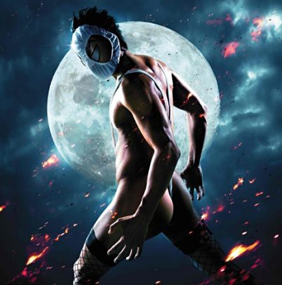 Unable to wait for the police, Kyosuke sneaks into the bank to rescue her. In a rush to disguise himself, he grabs what he thinks is a mask but is actually a pair of women's panties. The moment he pulls the underwear over his face, the fabric touching his nose triggers a bizarre physical transformation. Kyosuke unleashes hidden powers that come from his unusual lineage. His father was a detective with a strong sense of justice, while his mother, Maki Shikijo, was a professional dominatrix in an S&M club. This combination of heroic will and sadistic perversion gives him superhuman strength, agility, and the ability to use ropes and restraints as weapons. Wearing only the panties on his head, a pair of briefs over his shoulders, fishnet stockings, and sneakers, he christens himself Hentai Kamen, the Perverted Mask, and easily defeats the criminals to save Aiko.