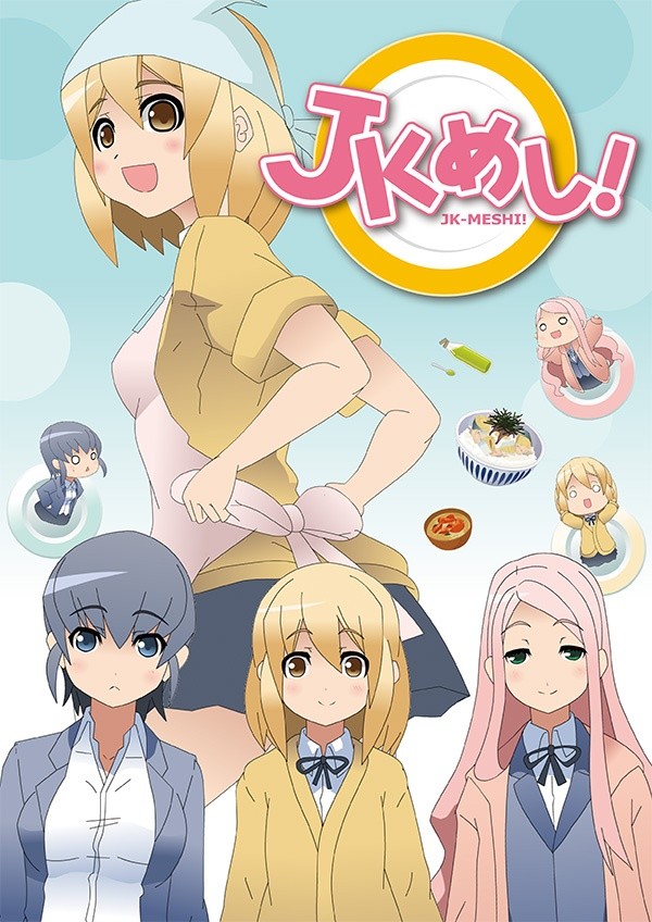 "JK Meshi!" is a slice-of-life anime that centers around the daily lives of three high school girls—Aoi, Rina, and Yui—who share a passion for cooking and eating together. The series is structured around their after-school gatherings, where they prepare and enjoy simple, homemade meals. Each episode focuses on a specific dish, often inspired by seasonal ingredients or personal preferences, and highlights the process of cooking in a relaxed, approachable manner. The narrative emphasizes the joy of sharing food and the camaraderie that develops through these culinary experiences.