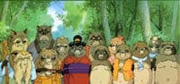 The narrative centers on a community of tanuki led by elder figures such as Oroku and Gonta, who guide the group in their resistance efforts. The tanuki employ various strategies, ranging from traditional folklore-inspired tactics, such as using their shape-shifting powers to scare humans, to more modern approaches, including forming alliances and staging protests. The film highlights the internal conflicts within the tanuki community, as some advocate for peaceful coexistence with humans, while others push for more aggressive measures.