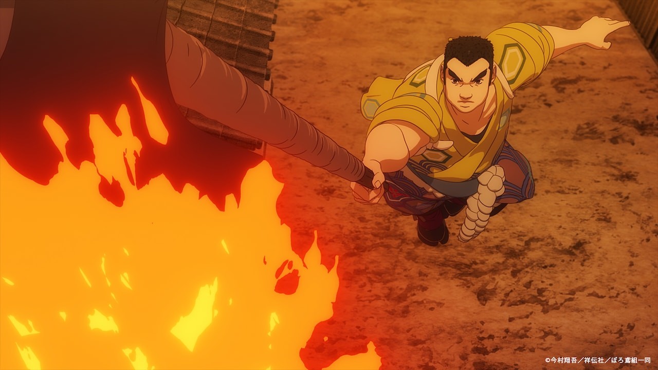 Simultaneously, a summary and preview images for the eighth episode, titled "The True Identity of the Fox," were released. The story revolves around a series of mysterious fires in Edo. The protagonists discover the existence of an unknown arsonist called "Fox Fire" after finding a fox symbol at the crime scenes. One character concludes that the arson method must involve a burning wind or a flammable gas. Meanwhile, in the background, Fox Fire is hatching an even darker plan.